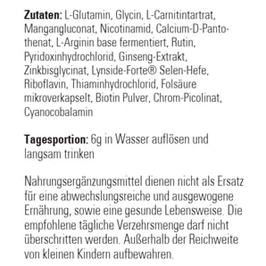 Inhalt: 180g, Dose = 30 Portionen | 1000g = 216.11 | Die Dosierung hängt ab von Fitness, Wellness, Hirnaktivität oder Einsatz zur Regeneration.